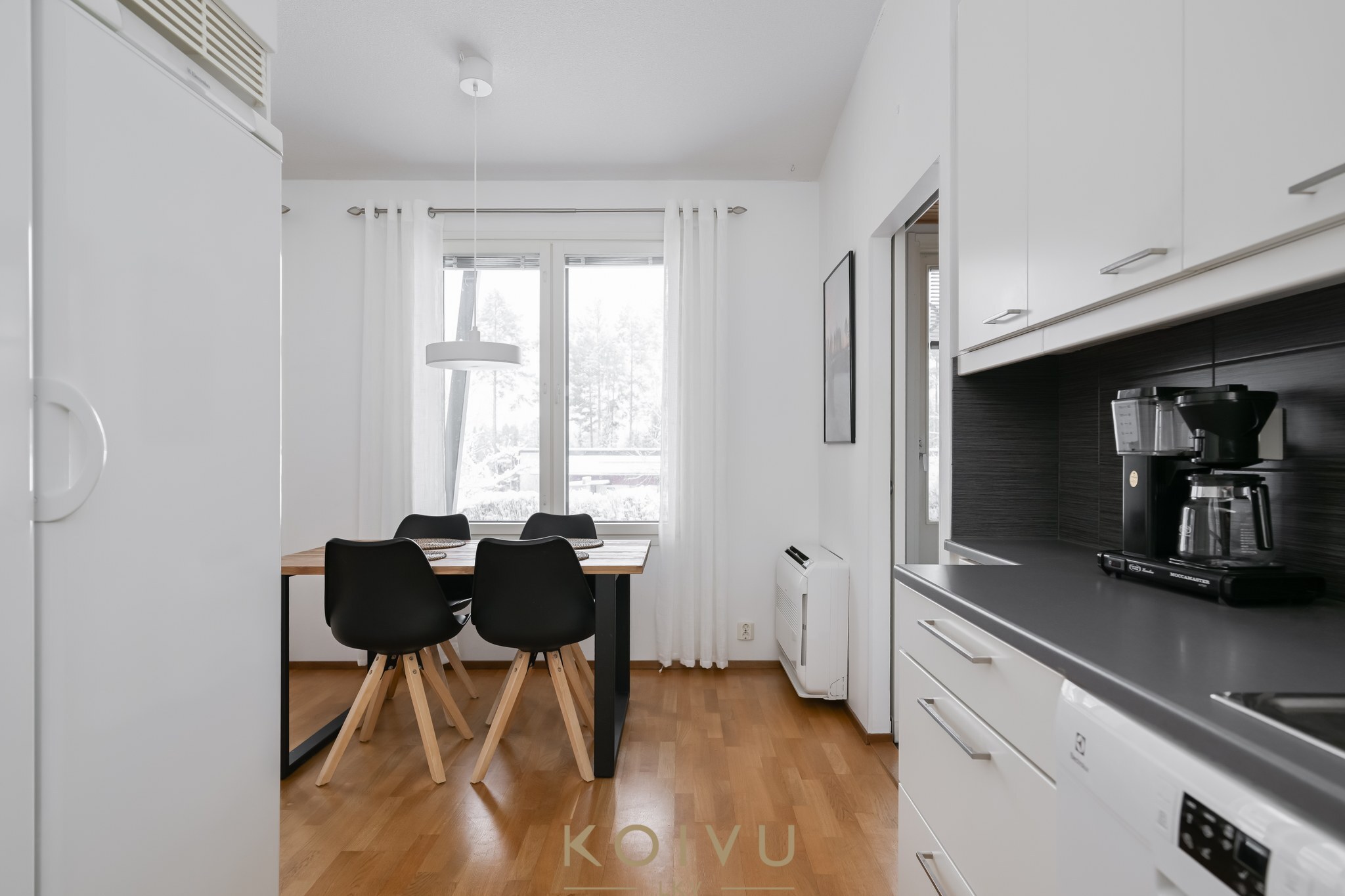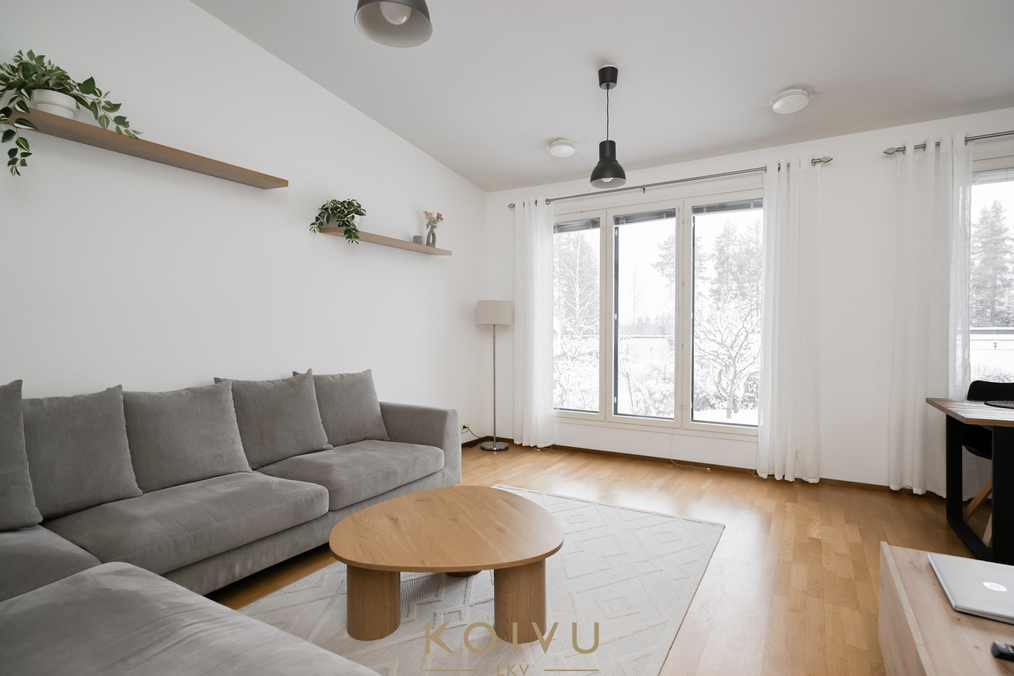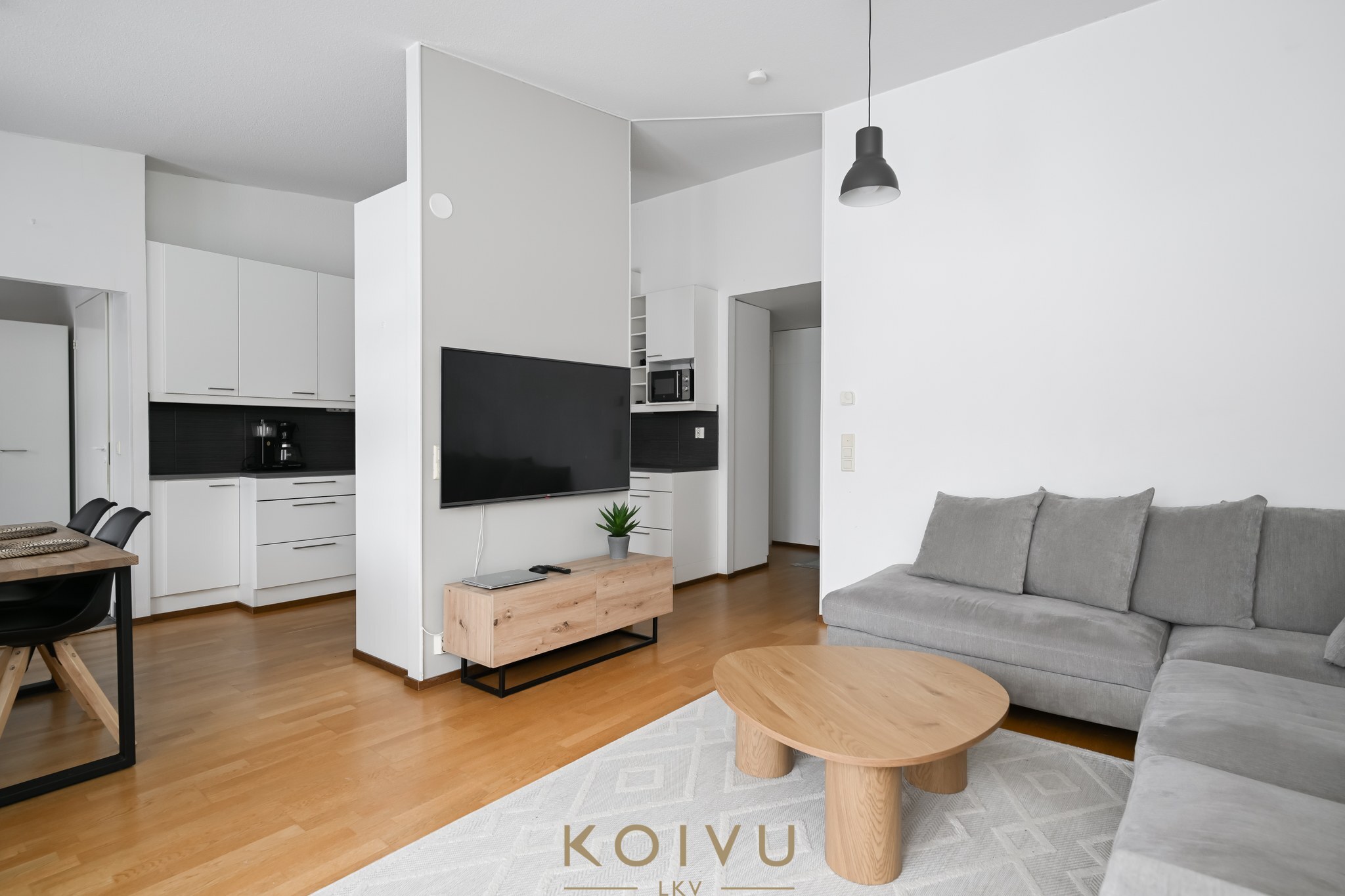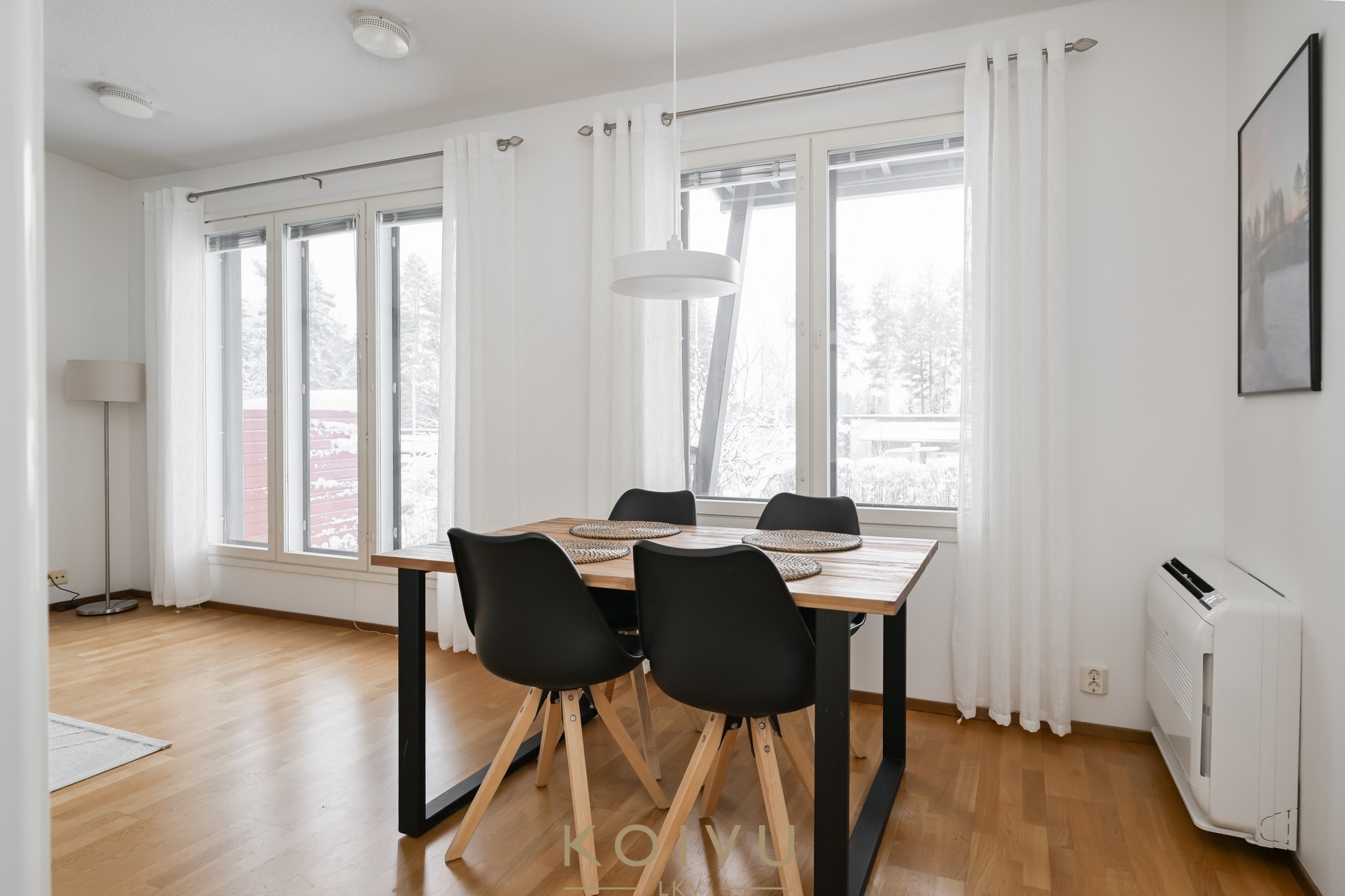 Kaukolämmöllä lämmitys ja mukavuutena ilmalämpöpumppu. Lämpö leviää lempeästi vesikiertoisella lattialämmityksellä.