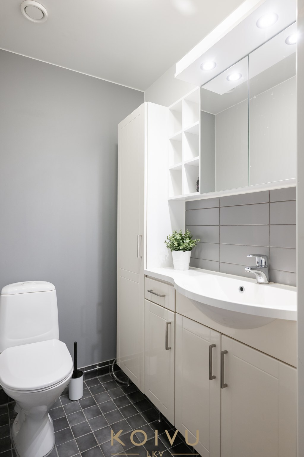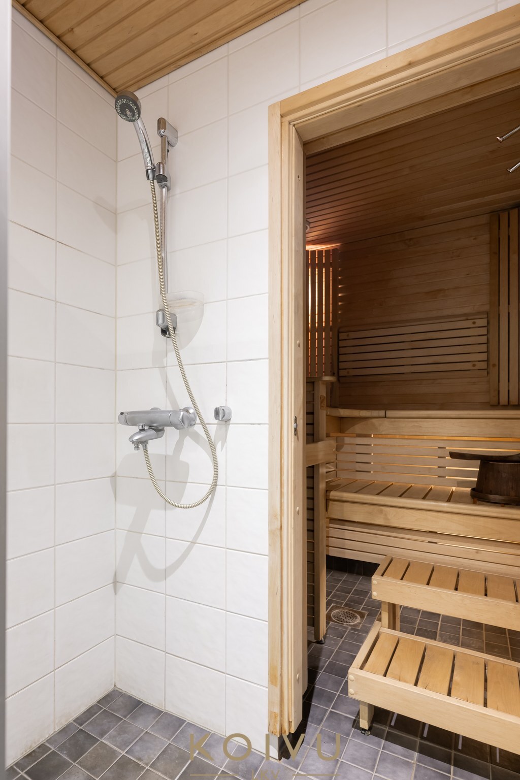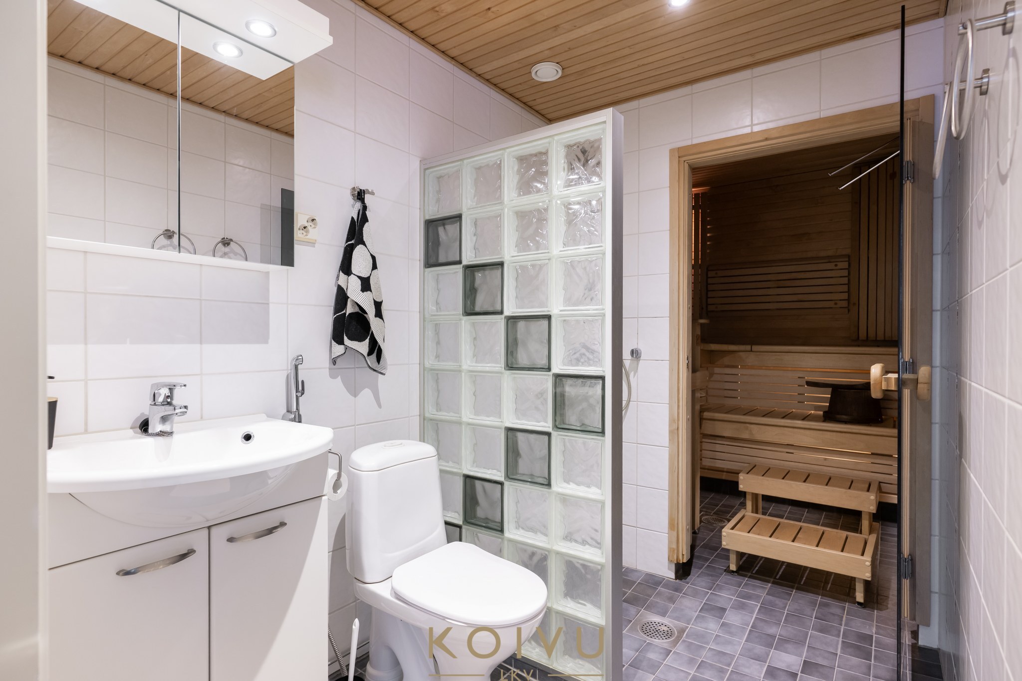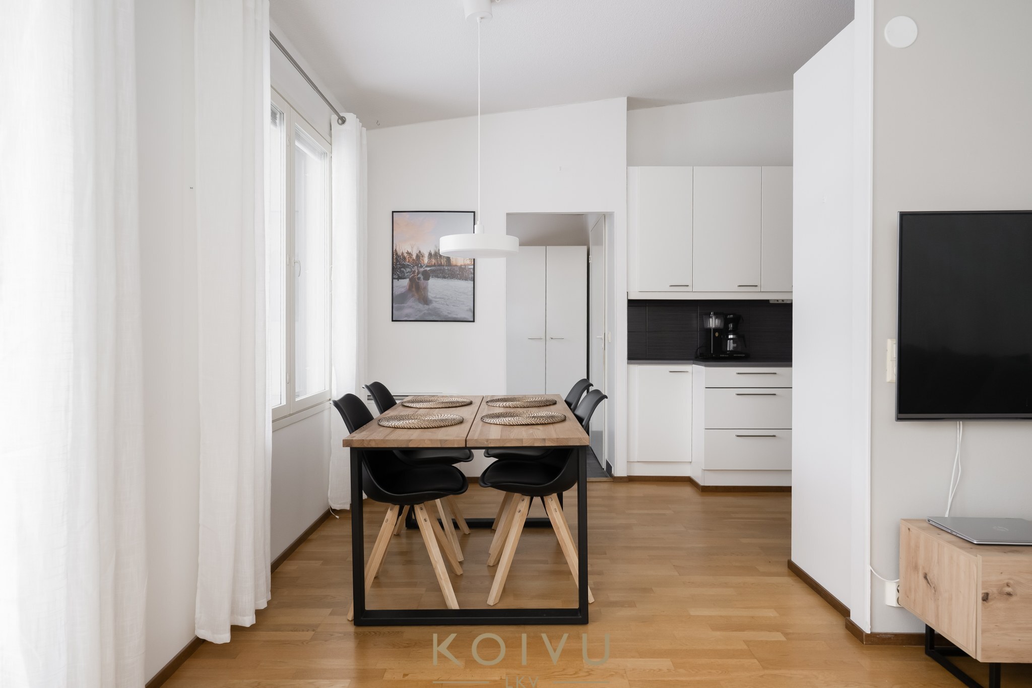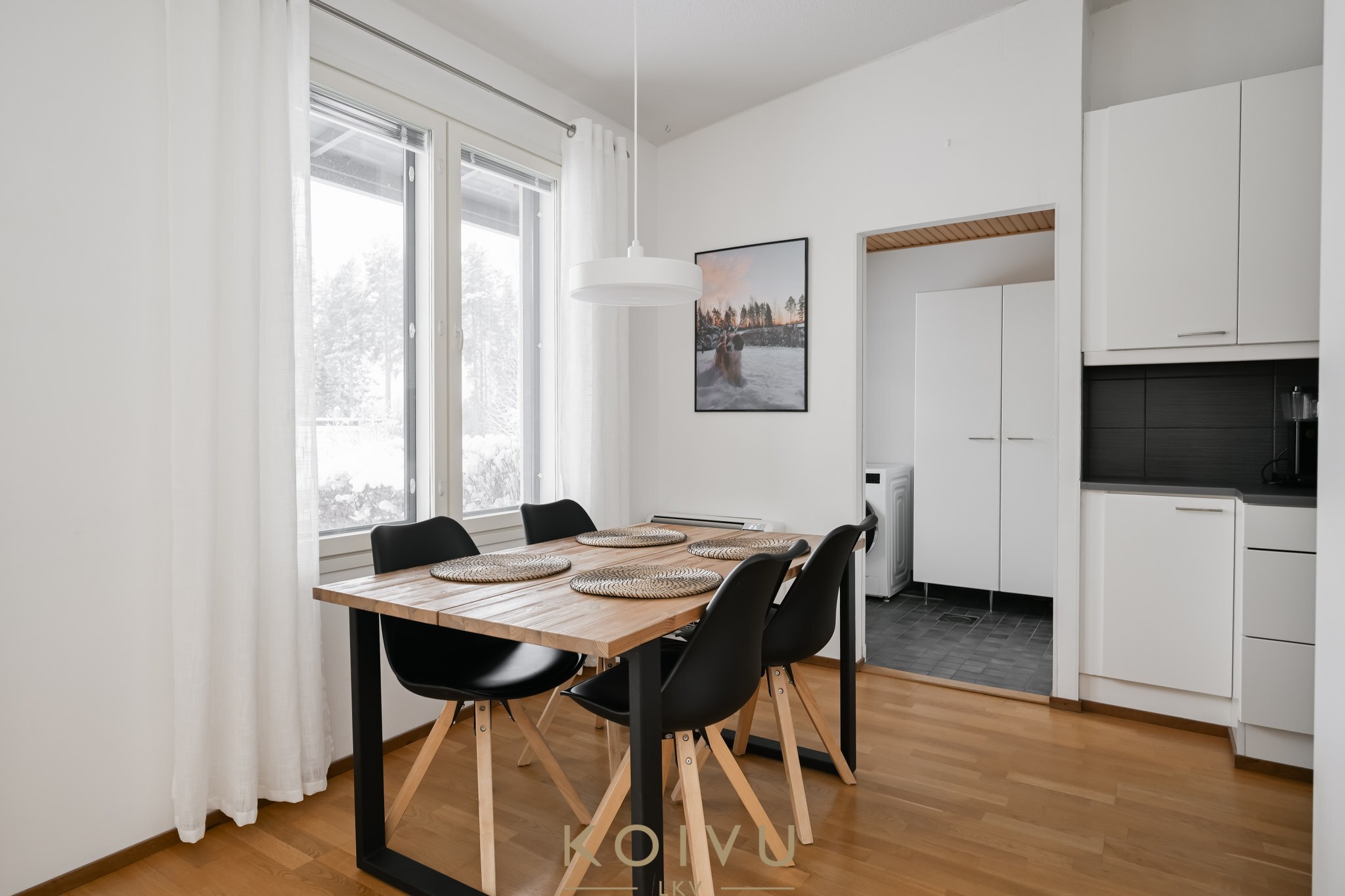 Kaukolämmöllä lämmitys ja mukavuutena ilmalämpöpumppu. Lämpö leviää lempeästi vesikiertoisella lattialämmityksellä.