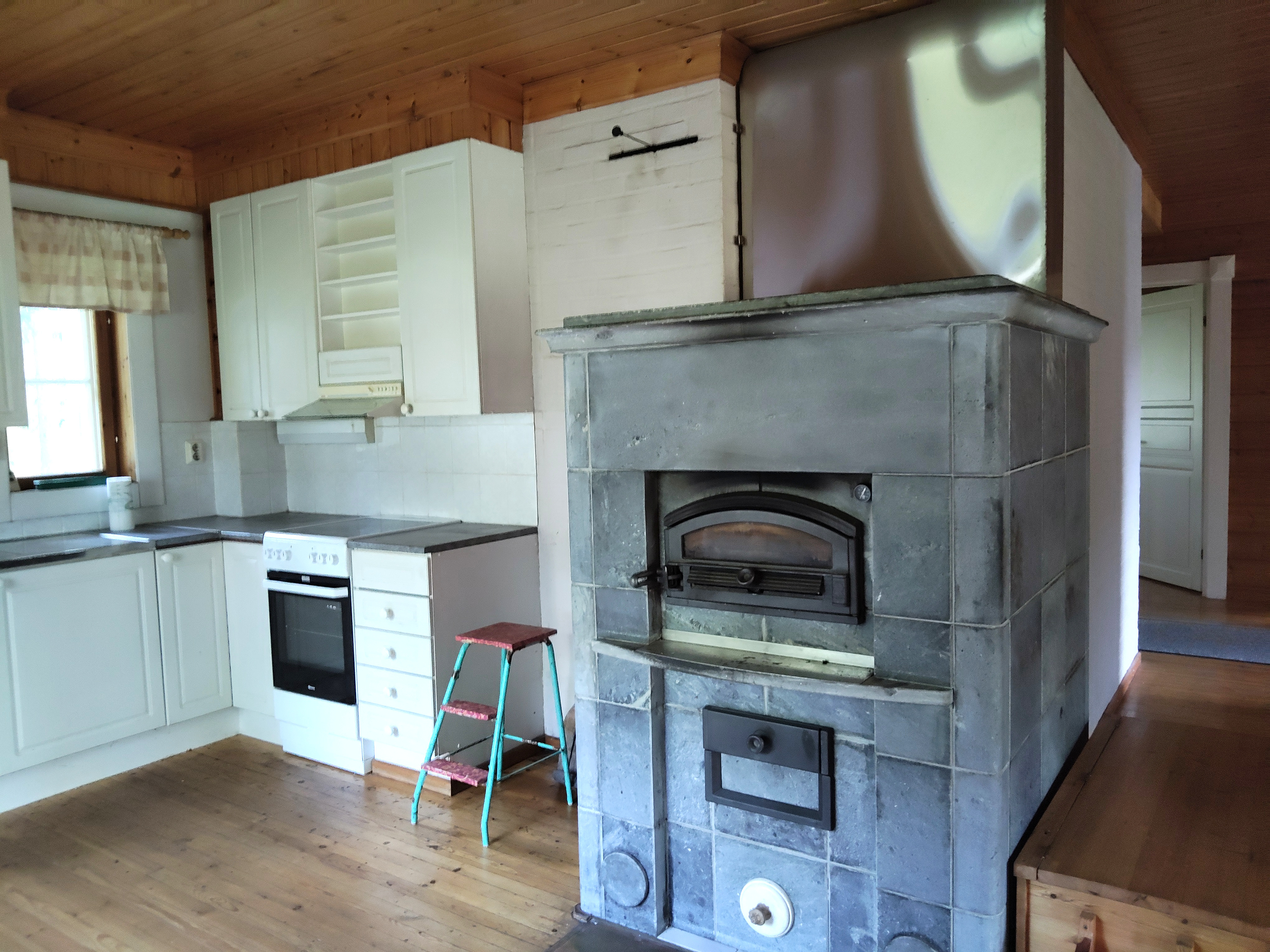 Ilmalämpöpumppu ja varaava leivinuuni, jonka kiertokanava lämmittää koko asuntoa, pitävät lämmityskulut kurissa.