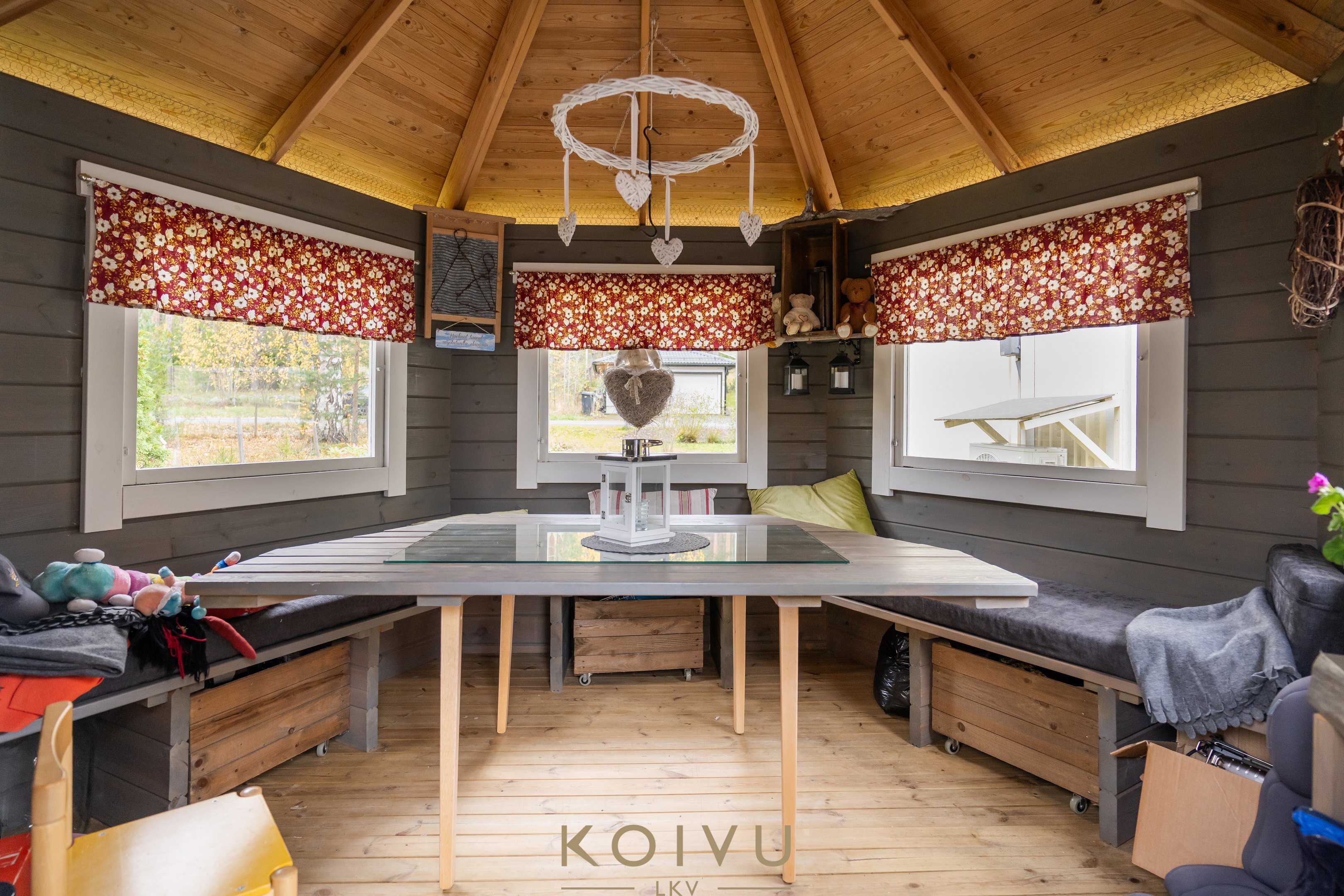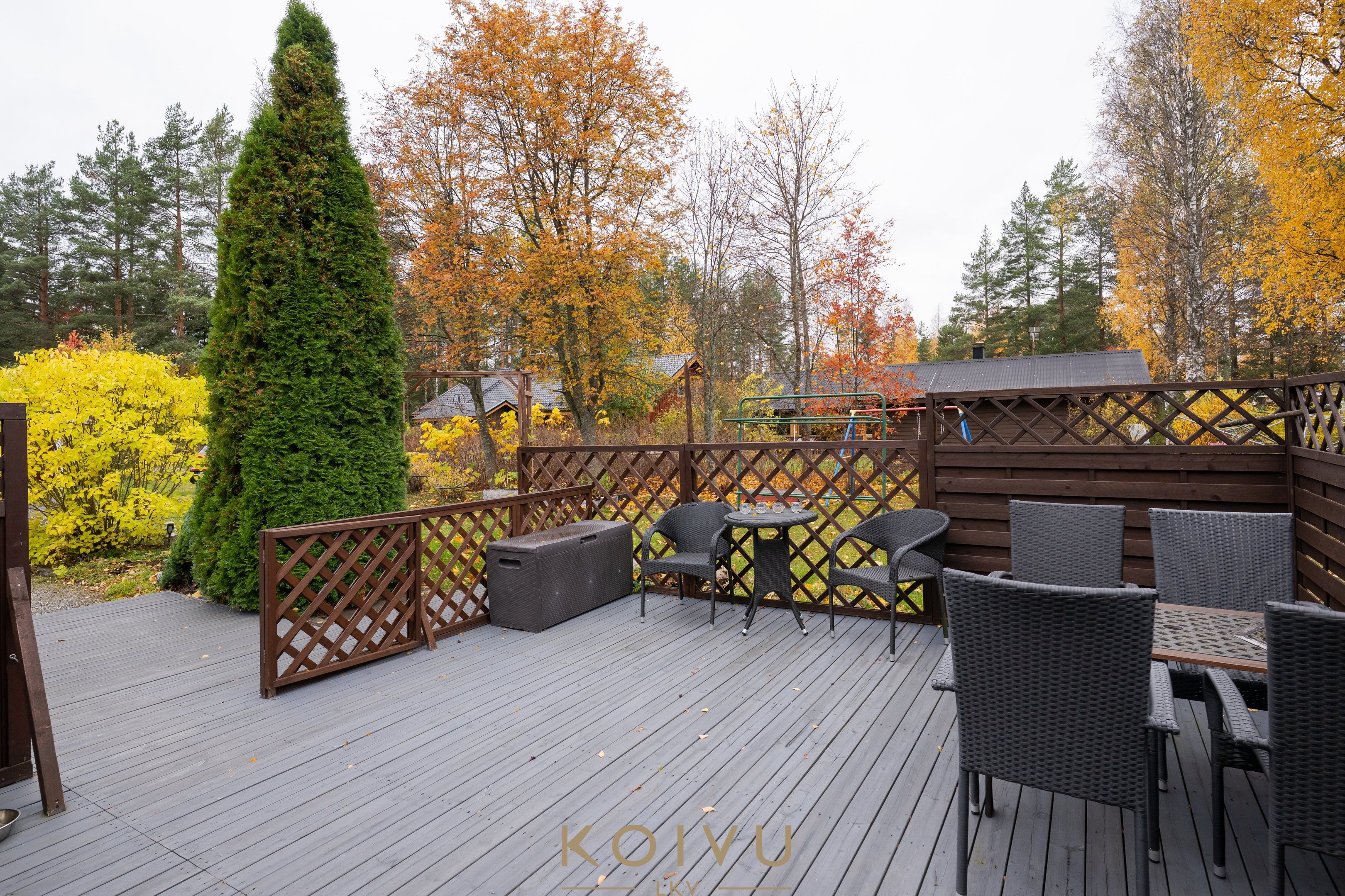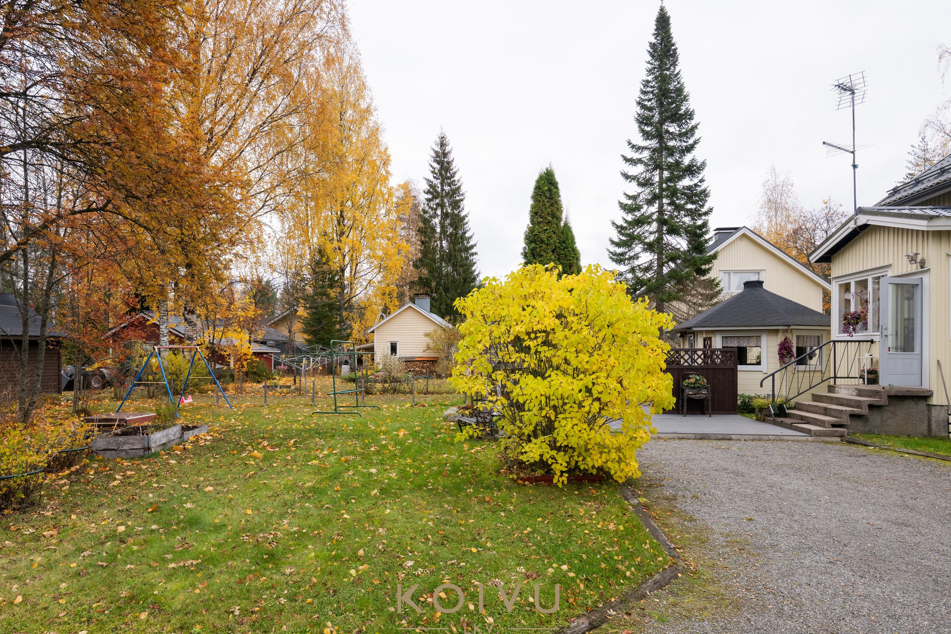 Tontti on tasainen, puutarhamainen ja vehreä – täydellinen paikka lasten leikeille, kesäisille puutarhajuhlille tai oman pihan kehittämiseen. Pihapiirissä sijaitsee lisäksi suuri talousrakennus, josta löytyy runsaasti varastotilaa sekä tunnelmallinen puulämmitteinen sauna – täydellinen paikka rentoutua päivän päätteeksi. Talon vieressä on myös paviljonkirakennus, jossa on mukava viettää aikaa vaikka lueskellen hyvää kirjaa.