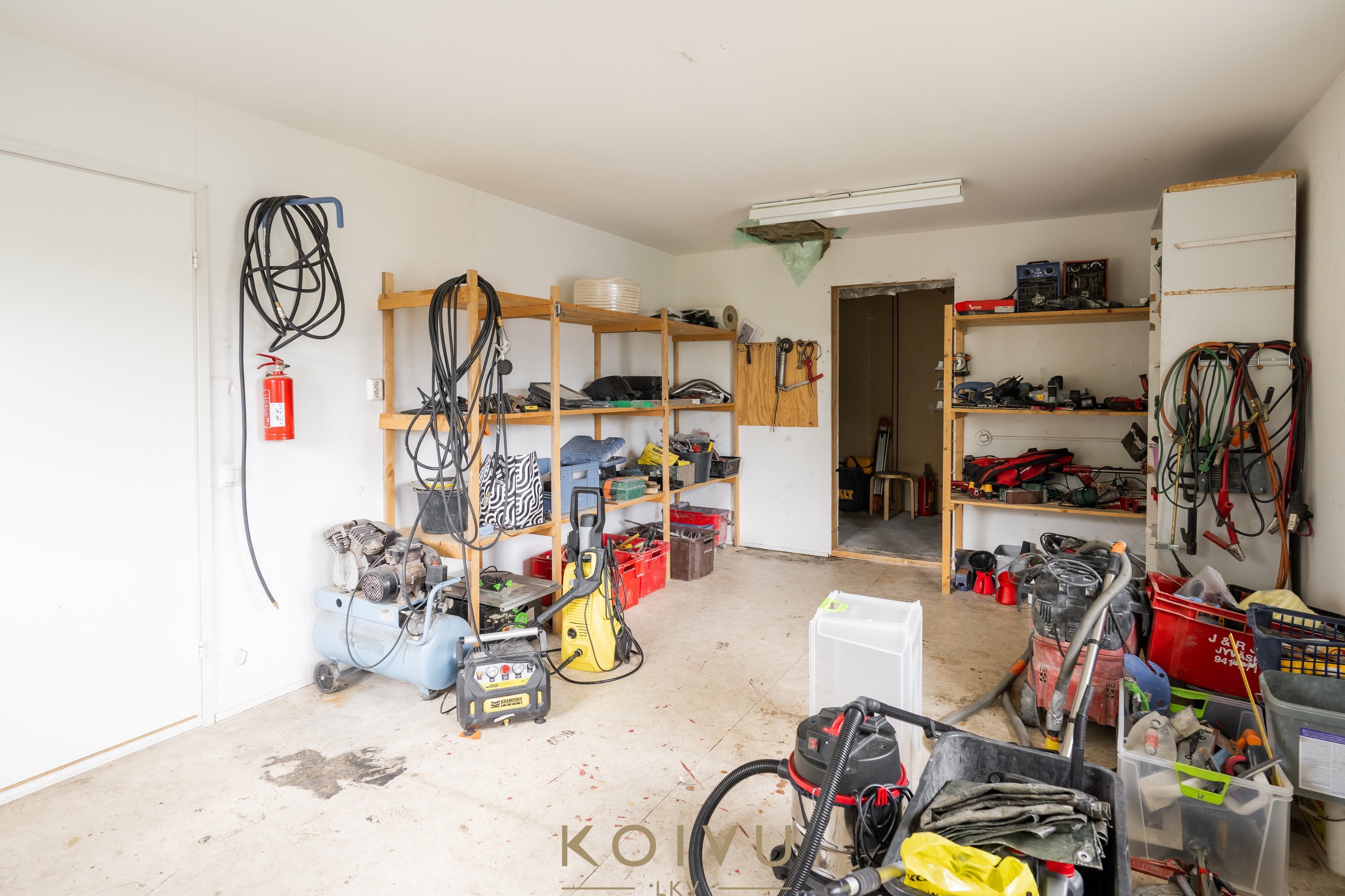 Pihapiirissä sijaitsee autotallirakennus, jonka yhteydessä on erillinen tila esimerkiksi vieraille, työskentelyyn tai harrastuksiin. Rantasauna ja oma ranta tuovat arkeen ripauksen mökkitunnelmaa. Korttajärvi on pieni ja rauhallinen, mikä korostaa ympäristön seesteisyyttä.