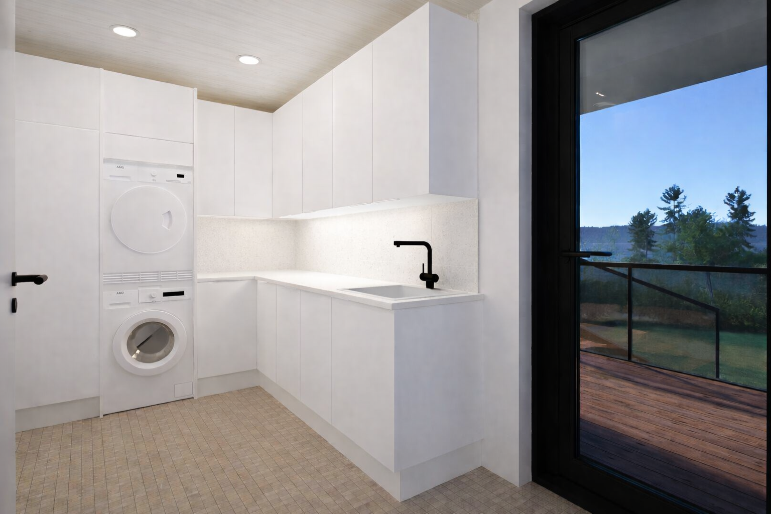 Katettu terassi tarjoaa viihtyisät puitteet ulkona oleskeluun pitkälle syksyyn, ja oma takapiha avaa monia mahdollisuuksia – vaikkapa ulkoporealtaalle tai rauhalliselle oleskelualueelle järvinäkymien äärelle.