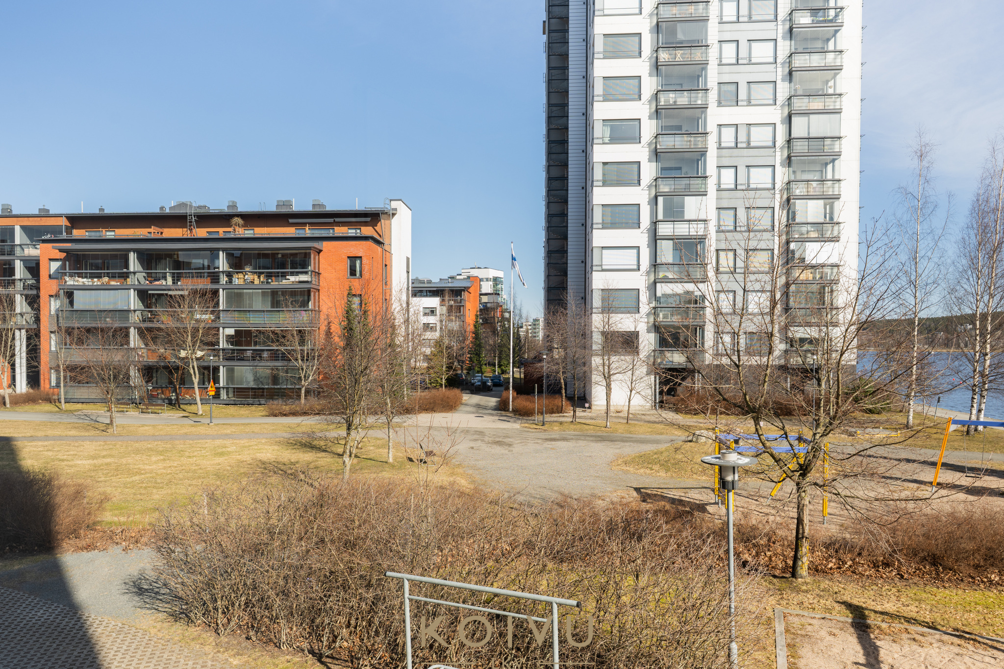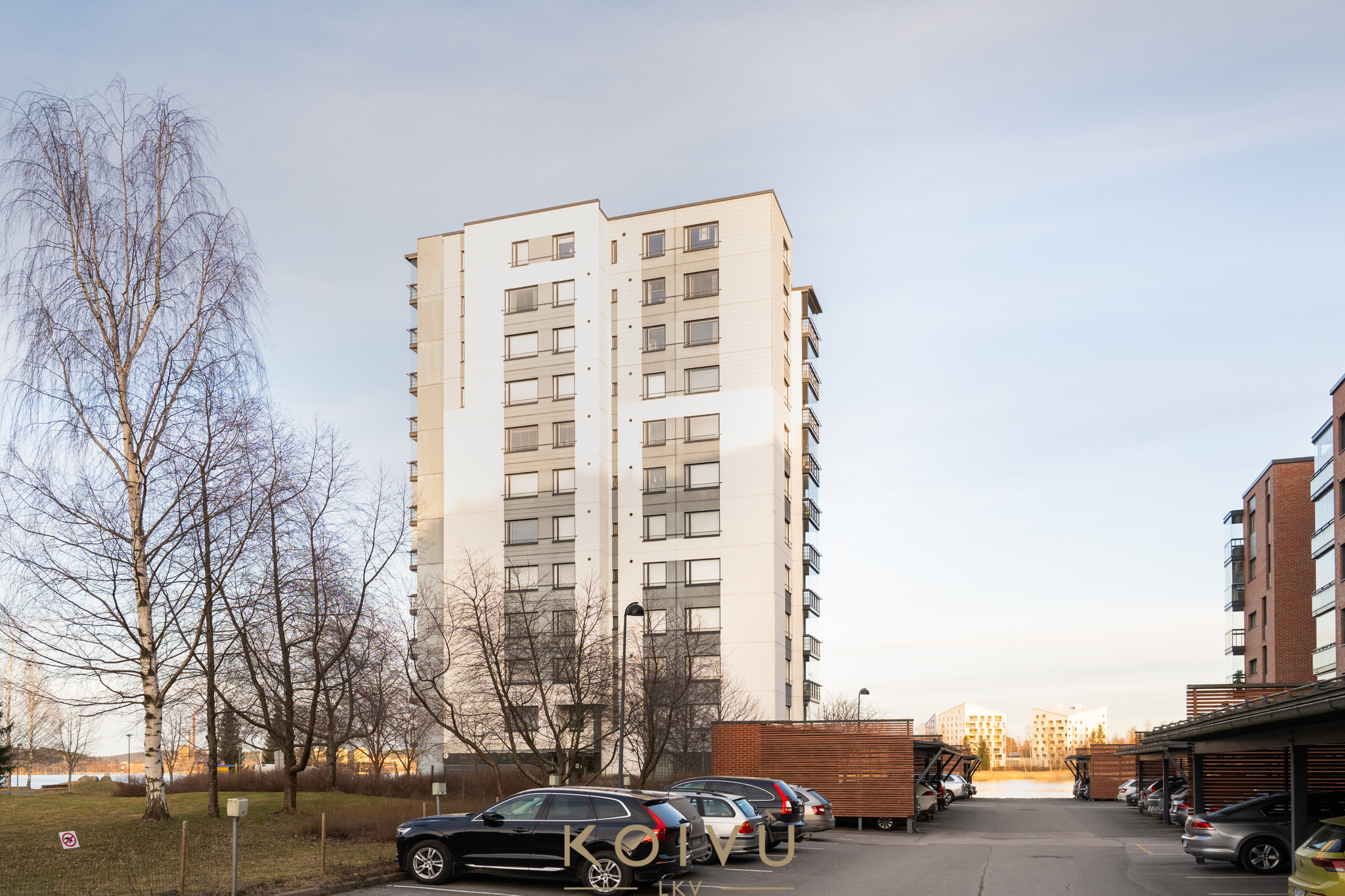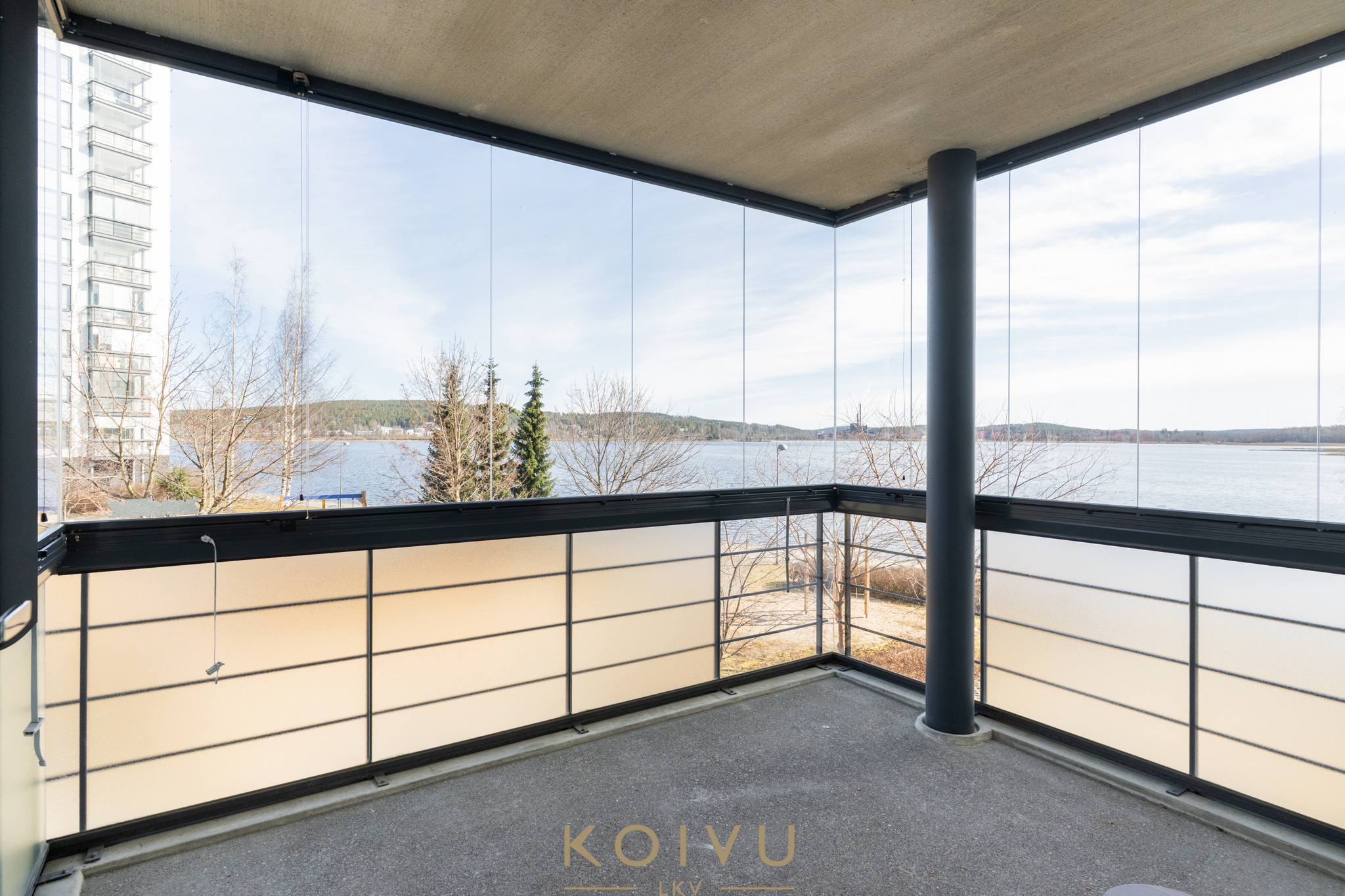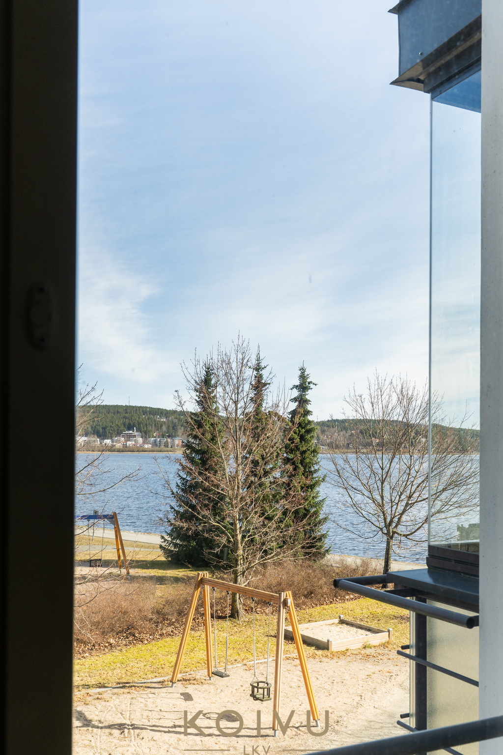 Jyväsjärvi on tässä asunnossa jatkuvasti läsnä. Kaunis puisto- ja järvimaisema avautuu horisontin tasalla olohuoneesta, makuuhuoneesta ja lasitetulta parvekkeelta. Vuodenaikojen vaihtelu näkyy suoraan sisälle.