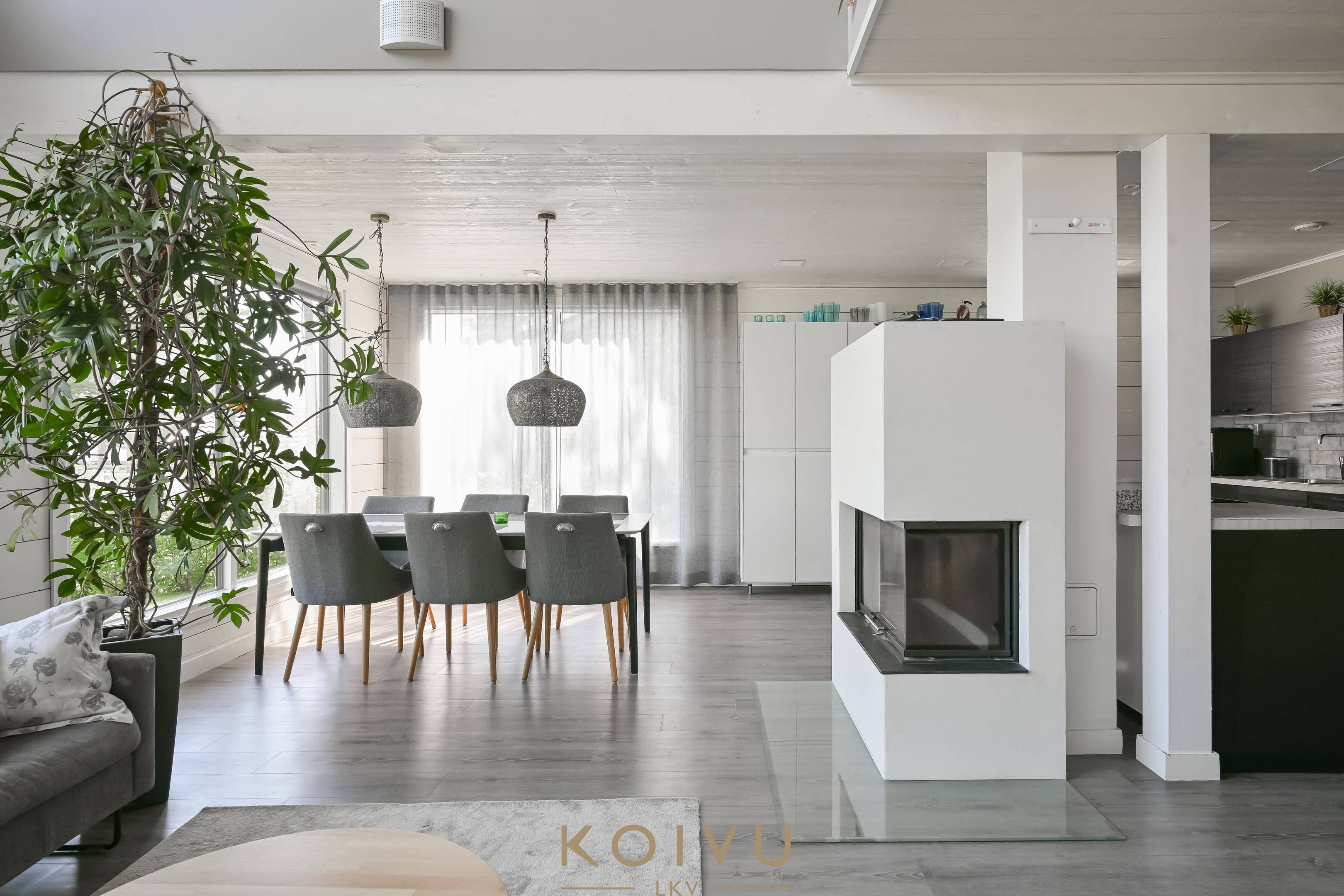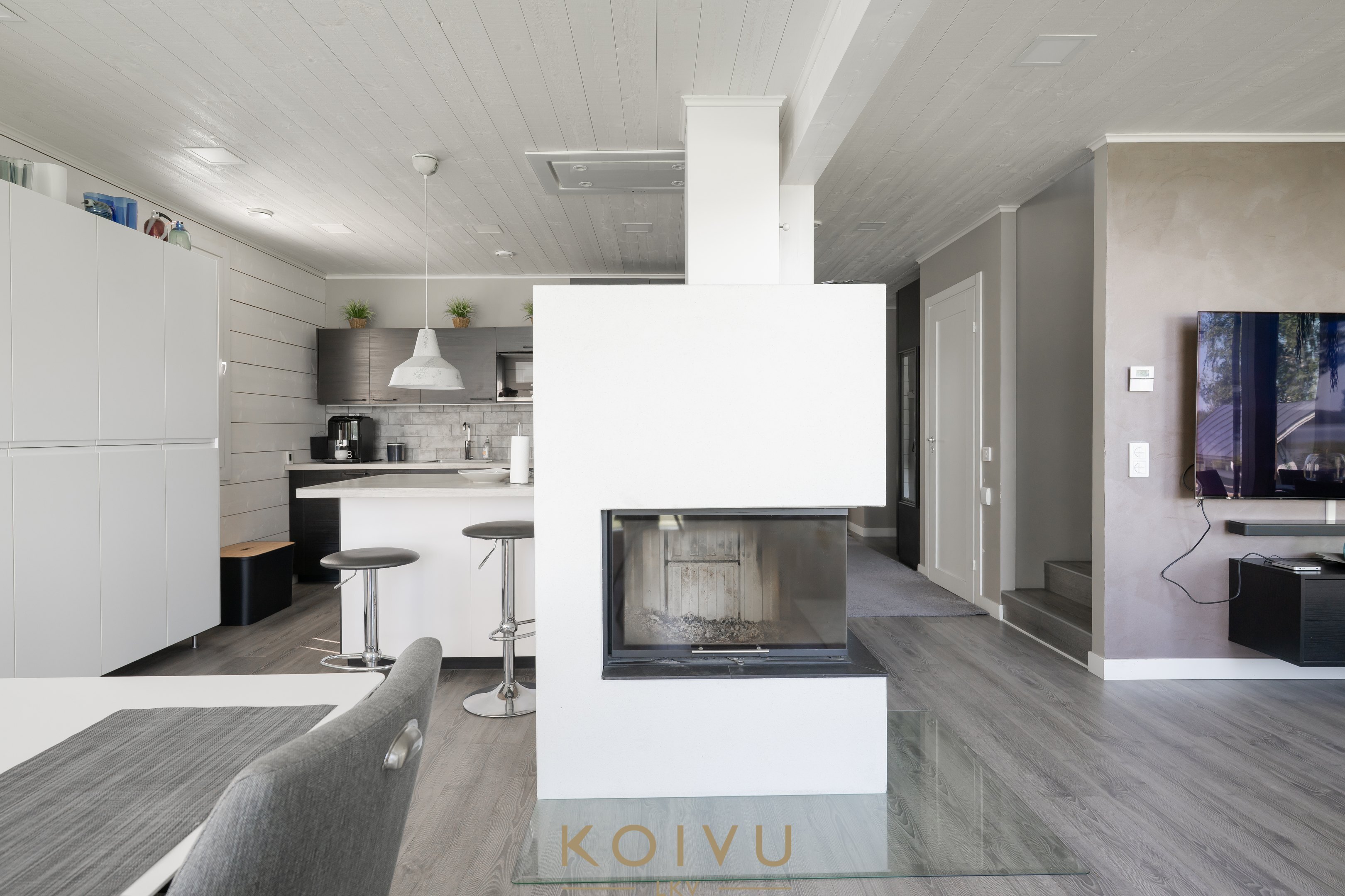 Talon sydän on kahteen kerrokseen avautuva olohuone, jonka suuret ikkunat kehystävät vuodenaikojen mukaan vaihtuvaa järvinäkymää – kuin elävä maisemataulu. Olohuoneen nykyaikainen kiertoilmatakka luo lämpöä ja tunnelmaa erityisesti viileinä talvipäivinä. Keittiö ilahduttaa ruoanlaitosta nauttivaa runsaalla kaappitilallaan ja laadukkailla kodinkoneillaan. Molemmista kerroksista löytyy makuuhuoneita, ja yläkerran päämakuuhuoneesta avautuu ranskalainen parveke suoraan järvelle.