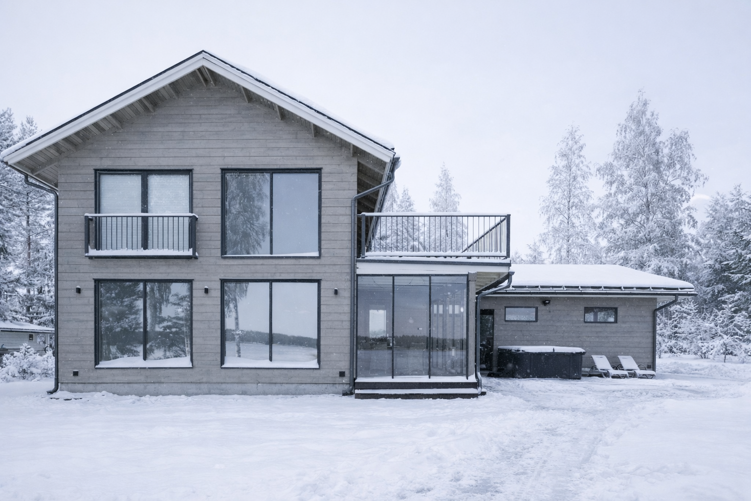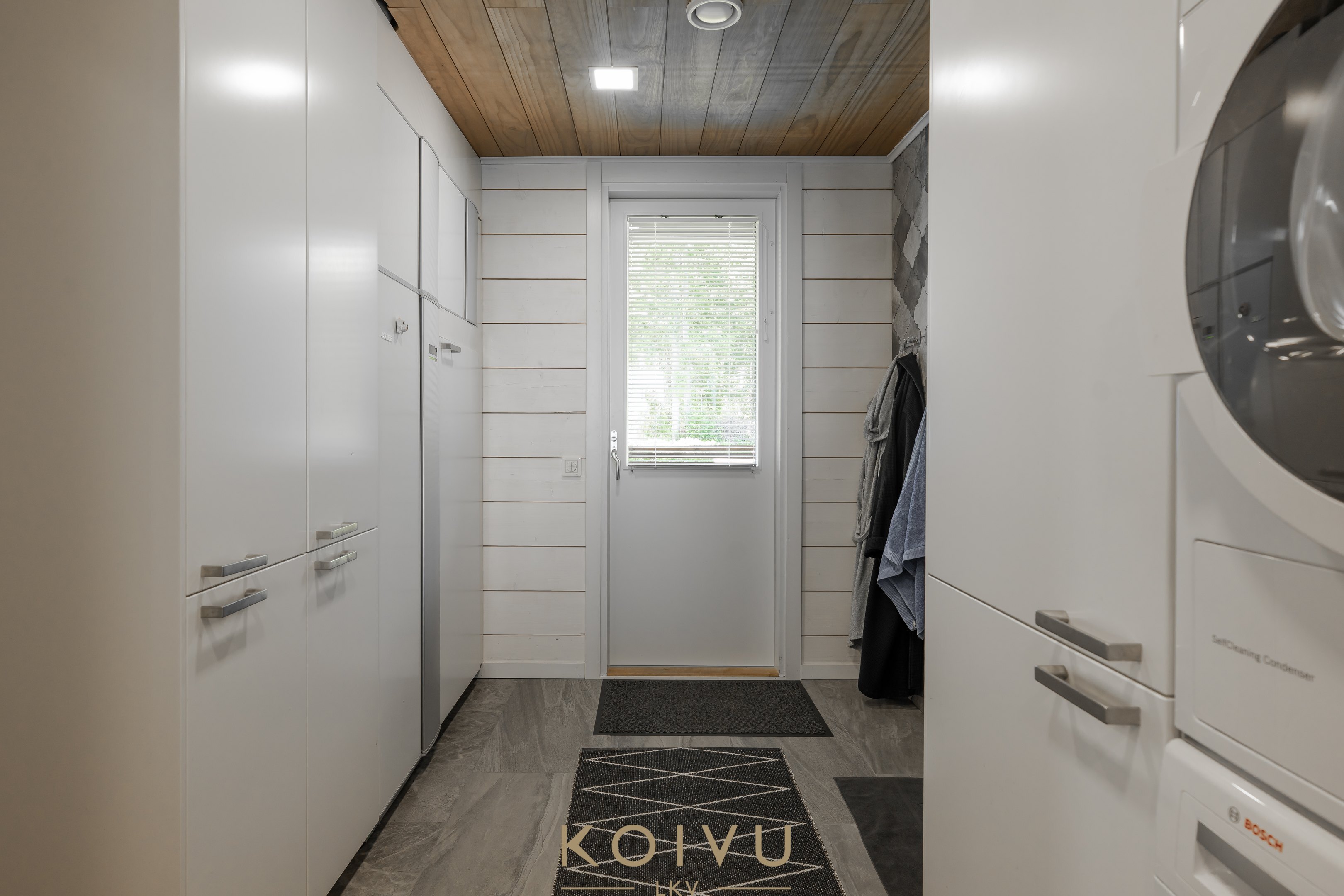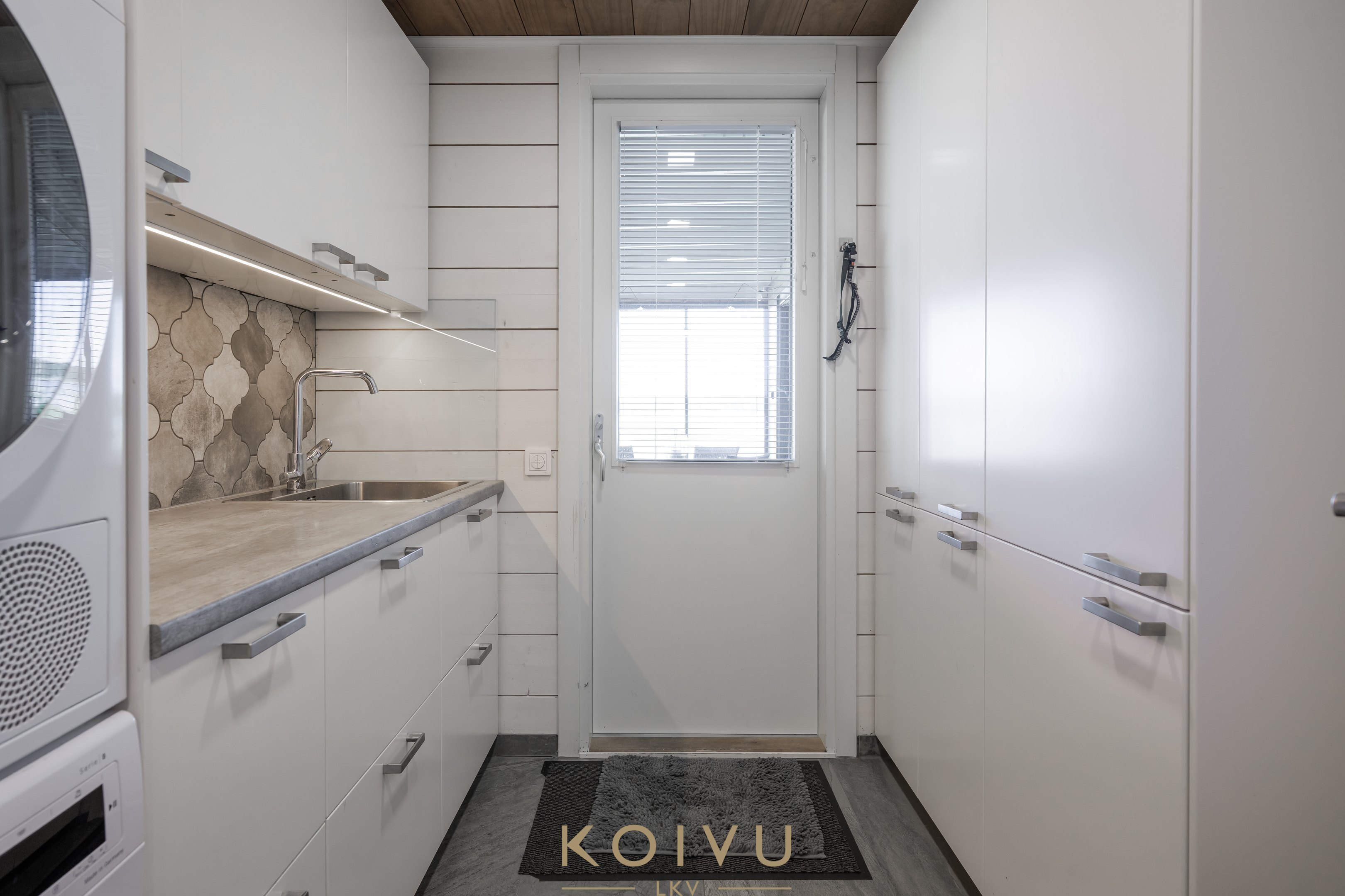 Kodinhoitotilat ja pesuhuone ovat tilavat ja käytännölliset, ja saunasta voit ihailla rauhoittavaa järvimaisemaa löylyjen lomassa. Suuri avoparveke toisessa kerroksessa tarjoaa täydellisen paikan nauttia auringosta ja hiljaisuudesta.
