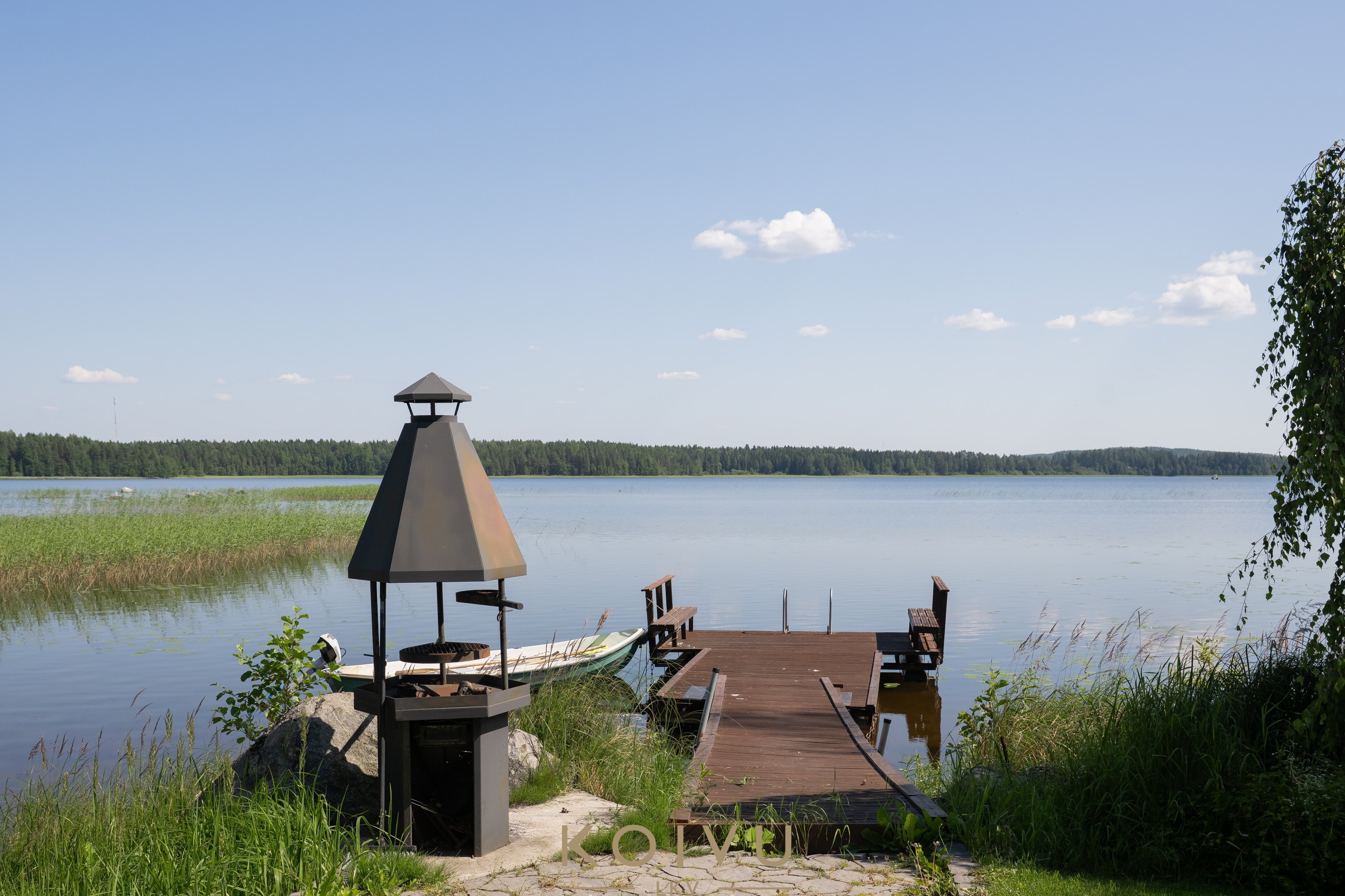 Upea hirsikoti omalla rannalla!