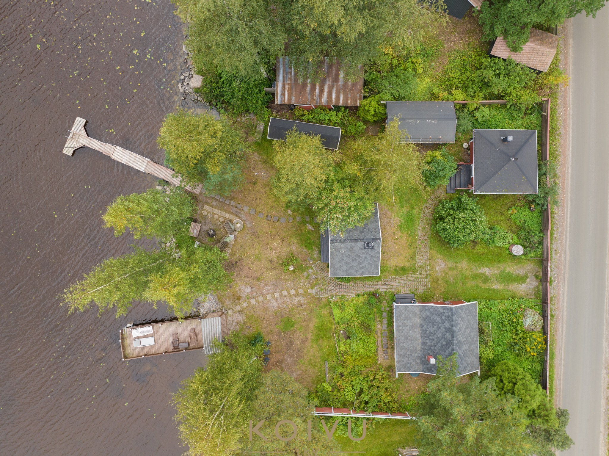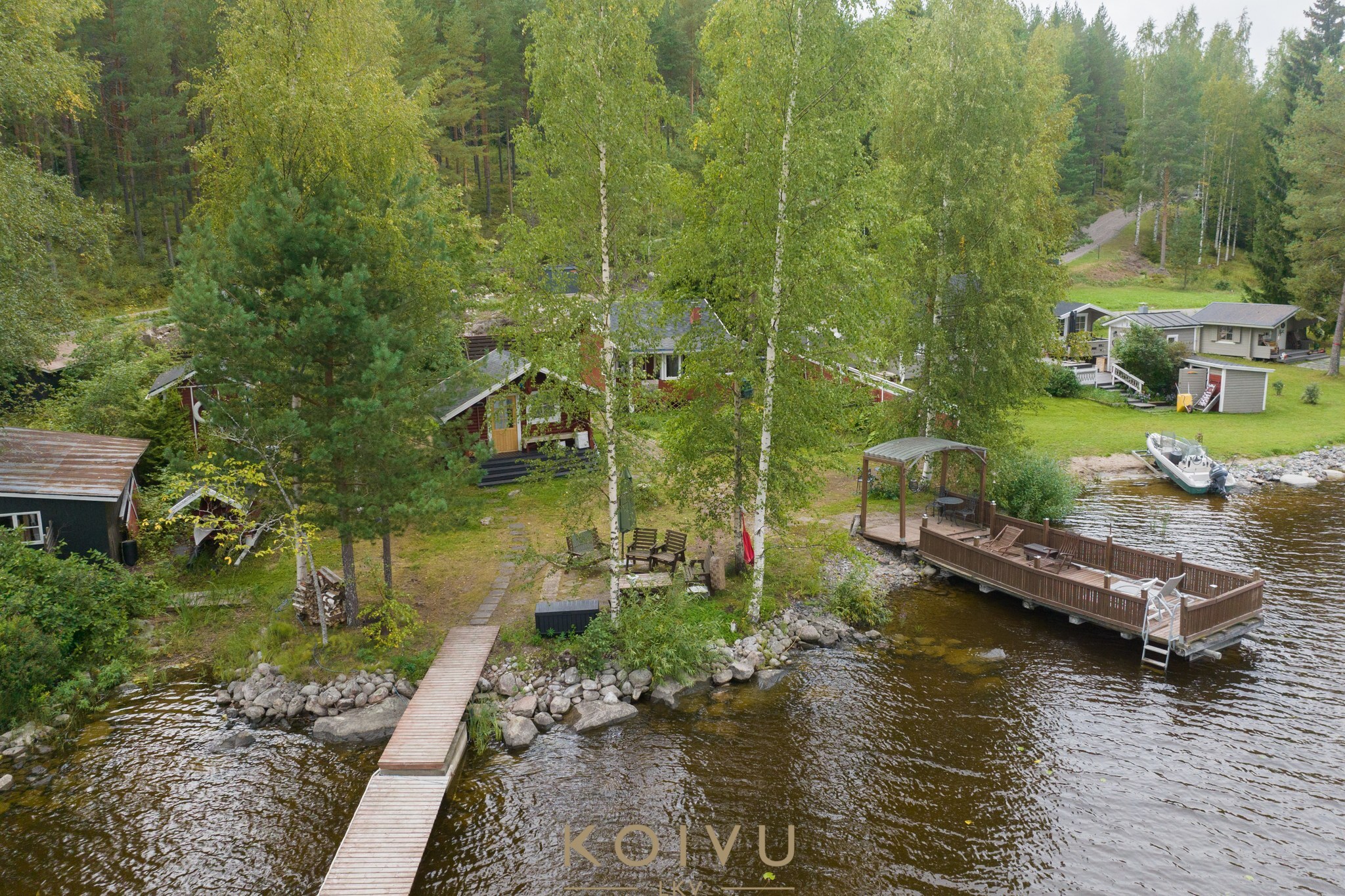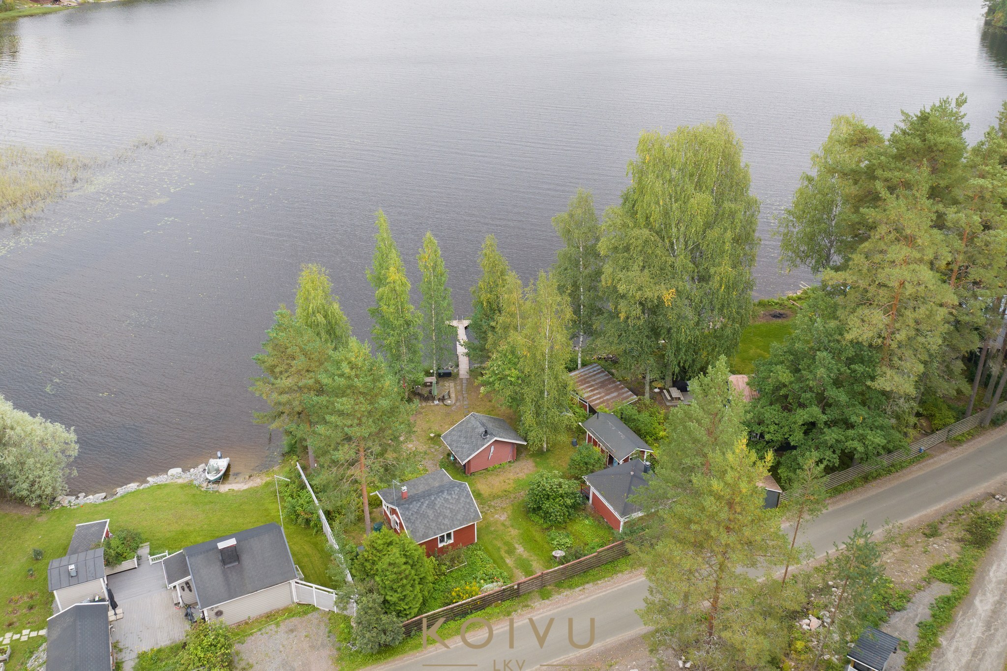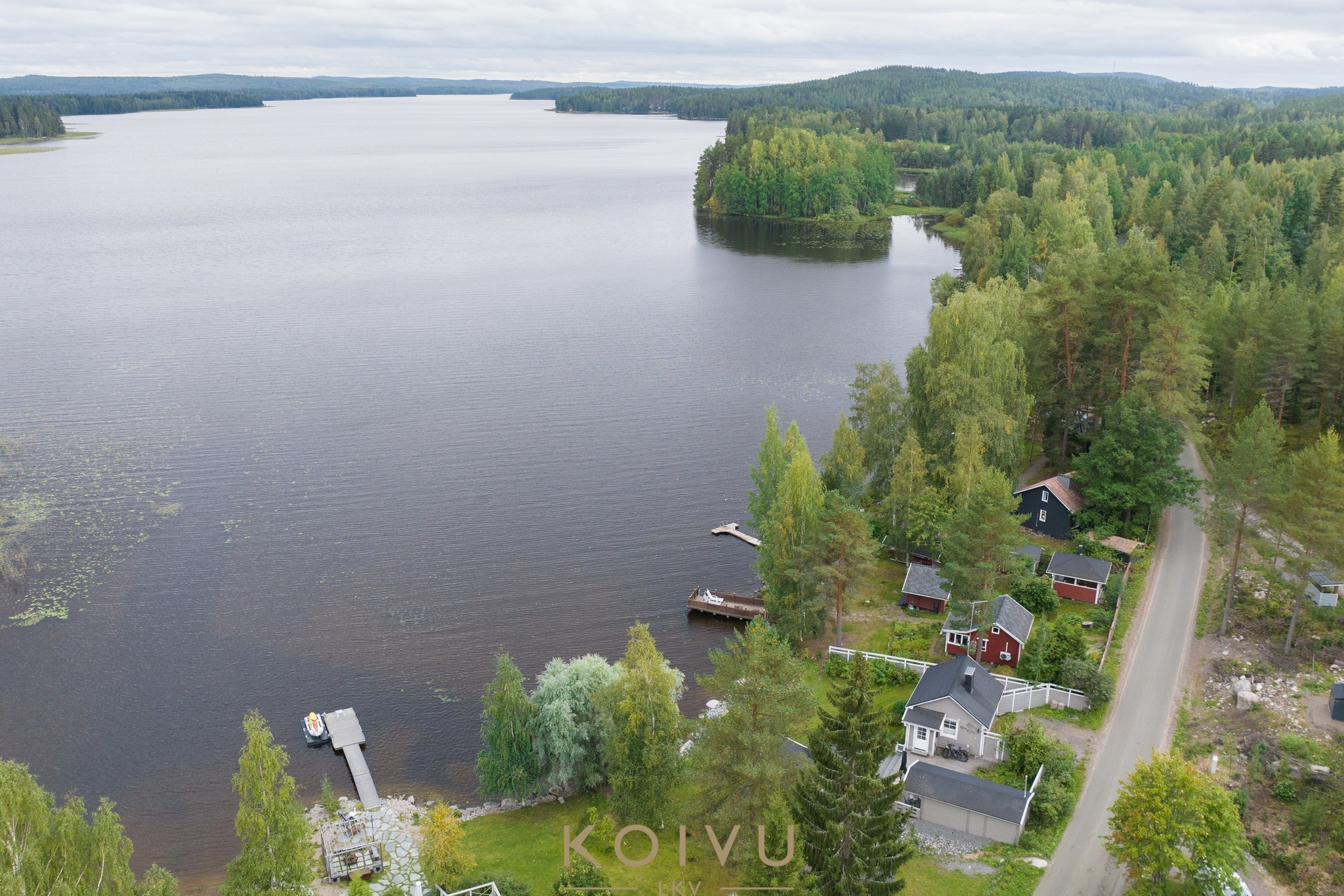 Tämä 4 rakennuksella ja 2 laiturilla varustettu mökkikokonaisuus sijaitsee vain noin 13 km päässä Jyväskylän keskustasta ja Vaajakoskelle noin 5 km.