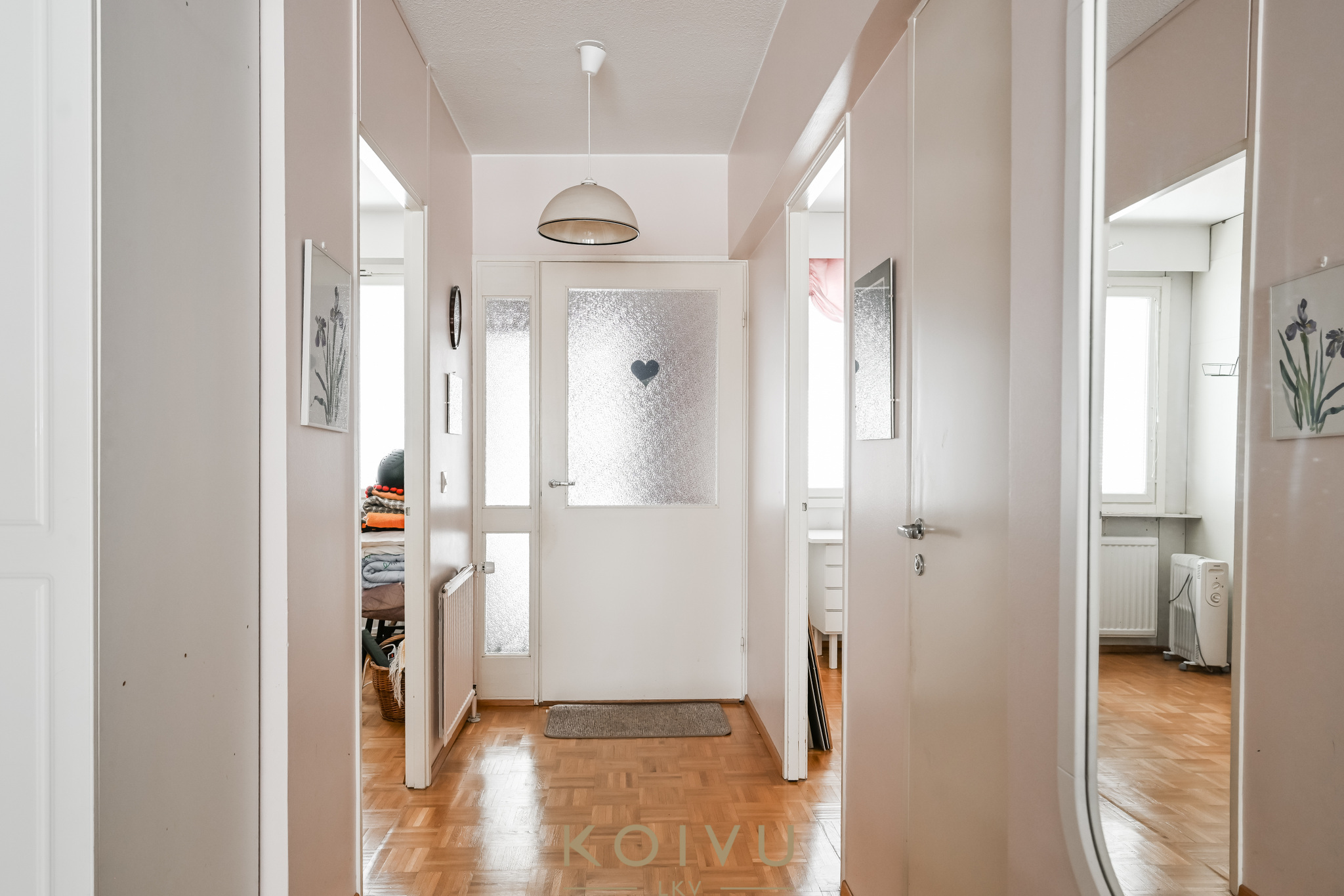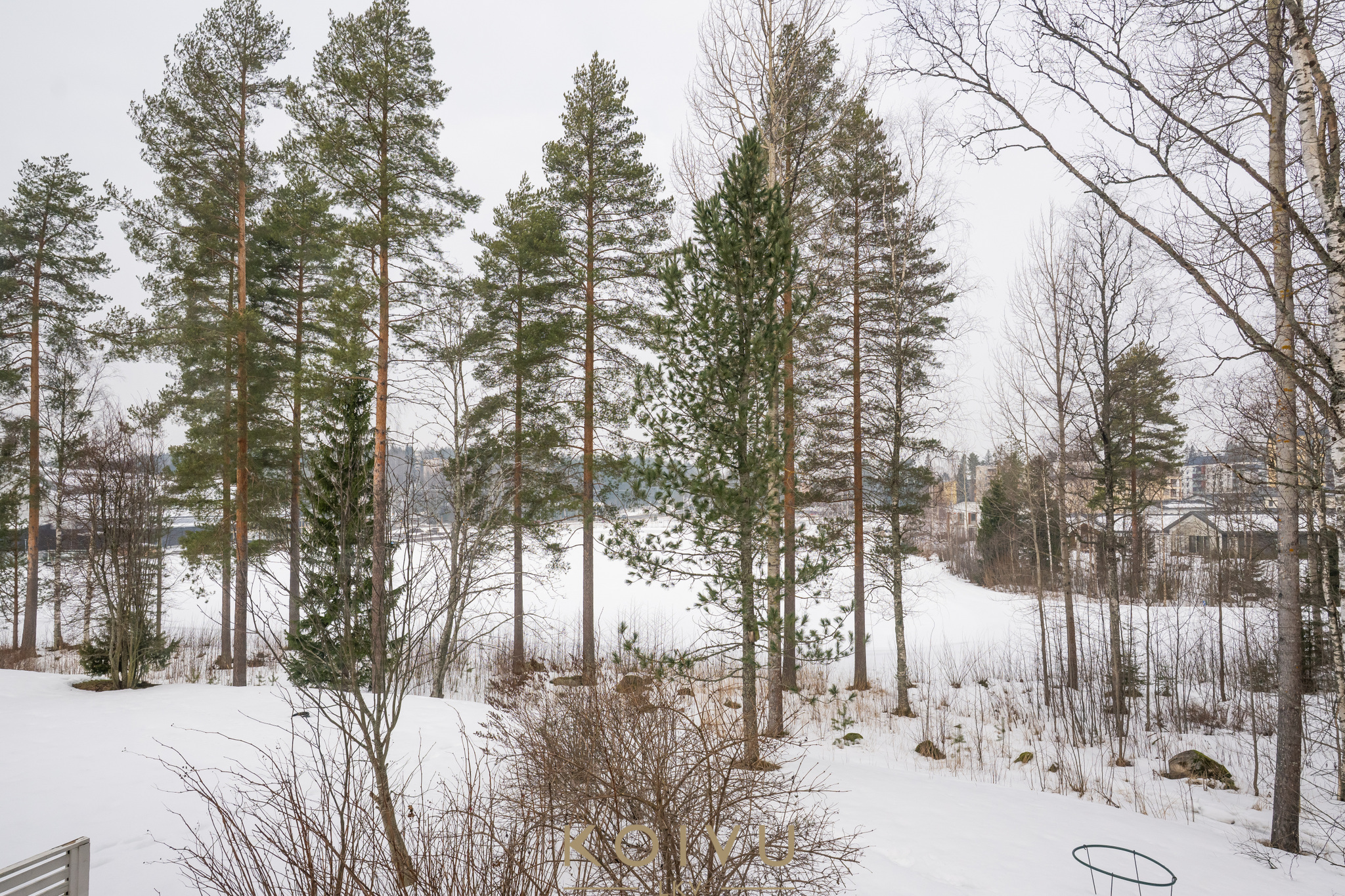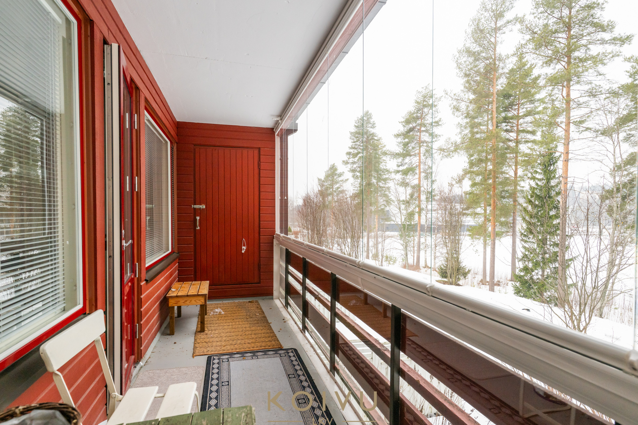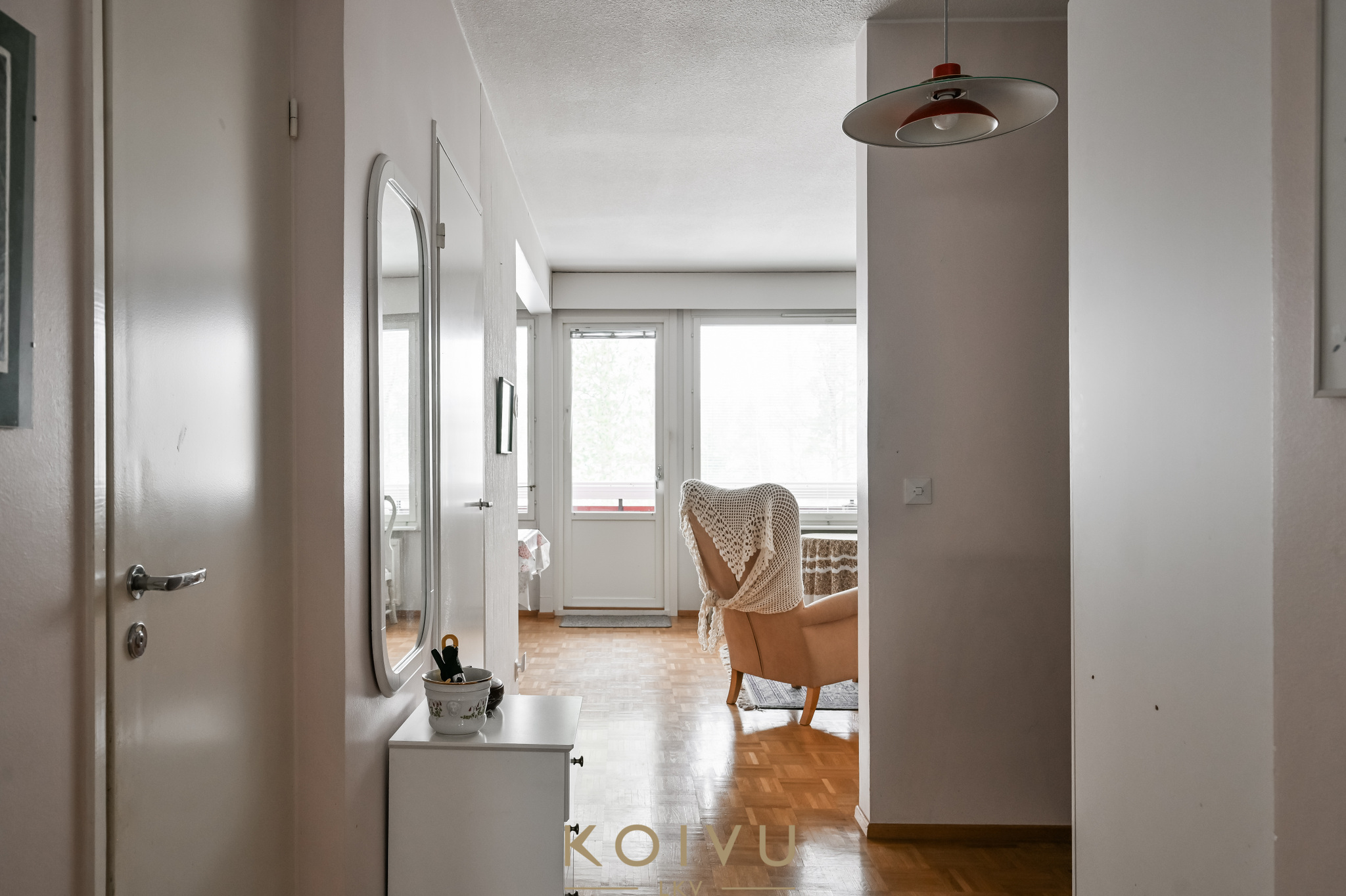 Kaksitasoinen pohjaratkaisu tuo asumiseen selkeyttä, ja tilat jakautuvat luontevasti eri tarpeisiin. Päätyasunnon sijainti lisää omaa rauhaa, ja lasitettu, asunnon levyinen parveke tuo lisää käyttötilaa ympäri vuoden.