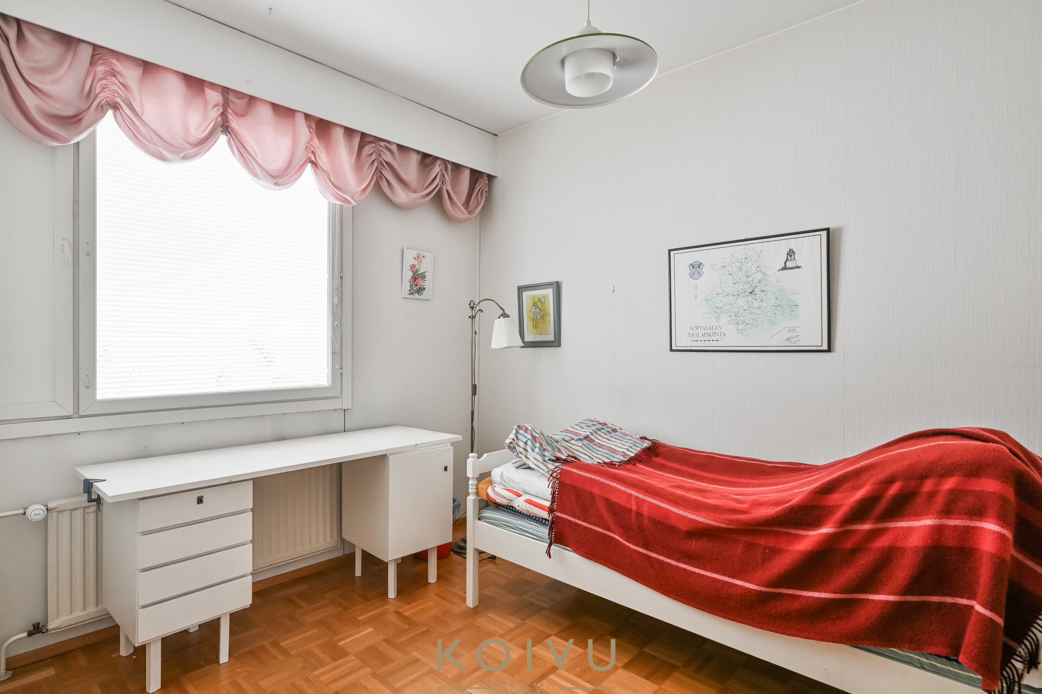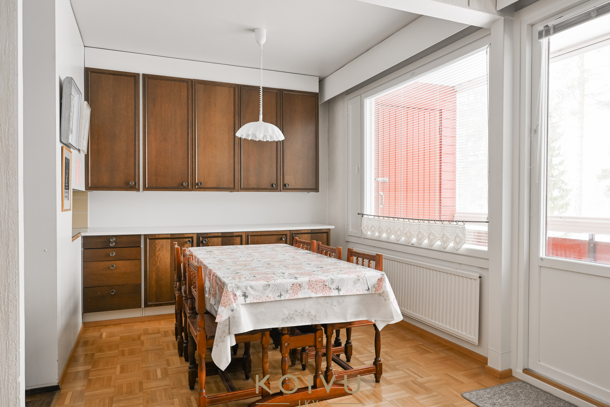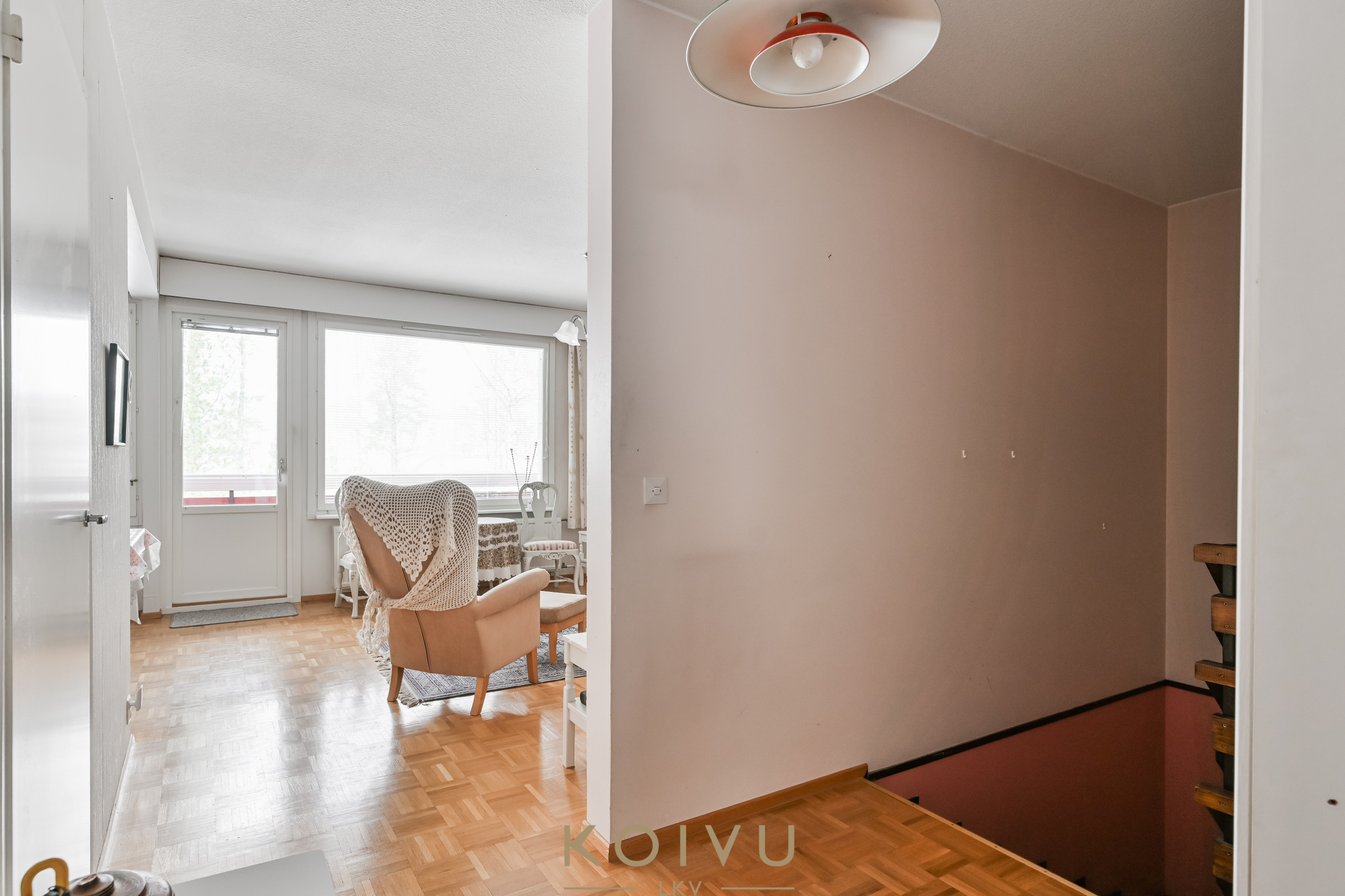 Huhtasuon asuinalueen takaosassa sijaitsee tämä vuonna 1976 valmistunut kaksitasoinen päätyasunto, jossa on poikkeuksellisen paljon tilaa ja hyvä perusta pitkäaikaiselle kodille. 131 m², neljä makuuhuonetta, asunnon levyinen lasitettu parveke sekä suuret varastotilat tekevät kokonaisuudesta käytännöllisen ja monella tavalla toimivan.